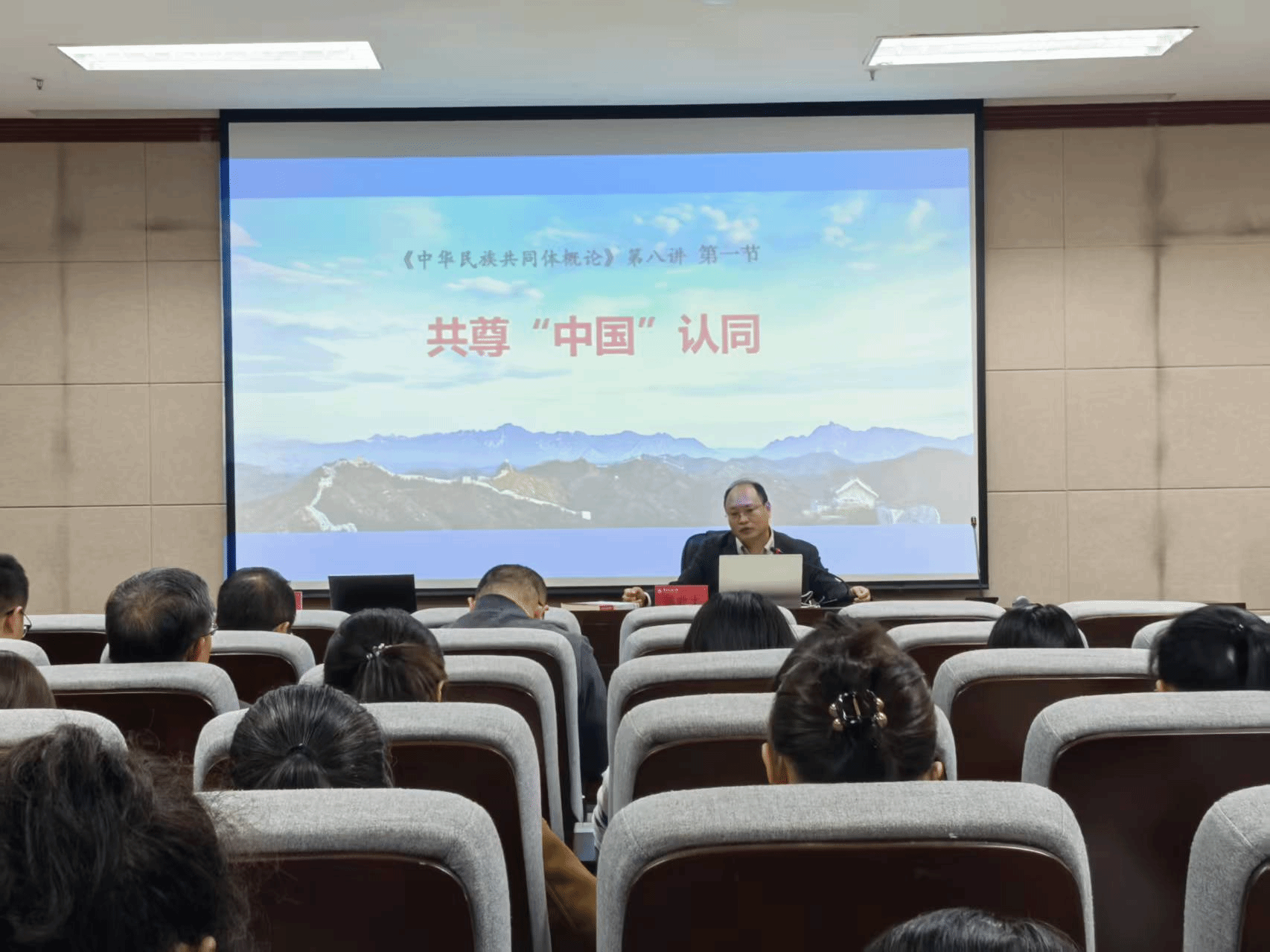 潘欧文通过梳理历史上少数民族政权对“中国”正统的认同,阐释了中华民族共同体形成的历史渊源,强化了对国家统一的历史必然性认知。最后,与会教师紧扣“中华民族共同体概论”教材的使用与授课,与潘欧文进行了深入交流与探讨。