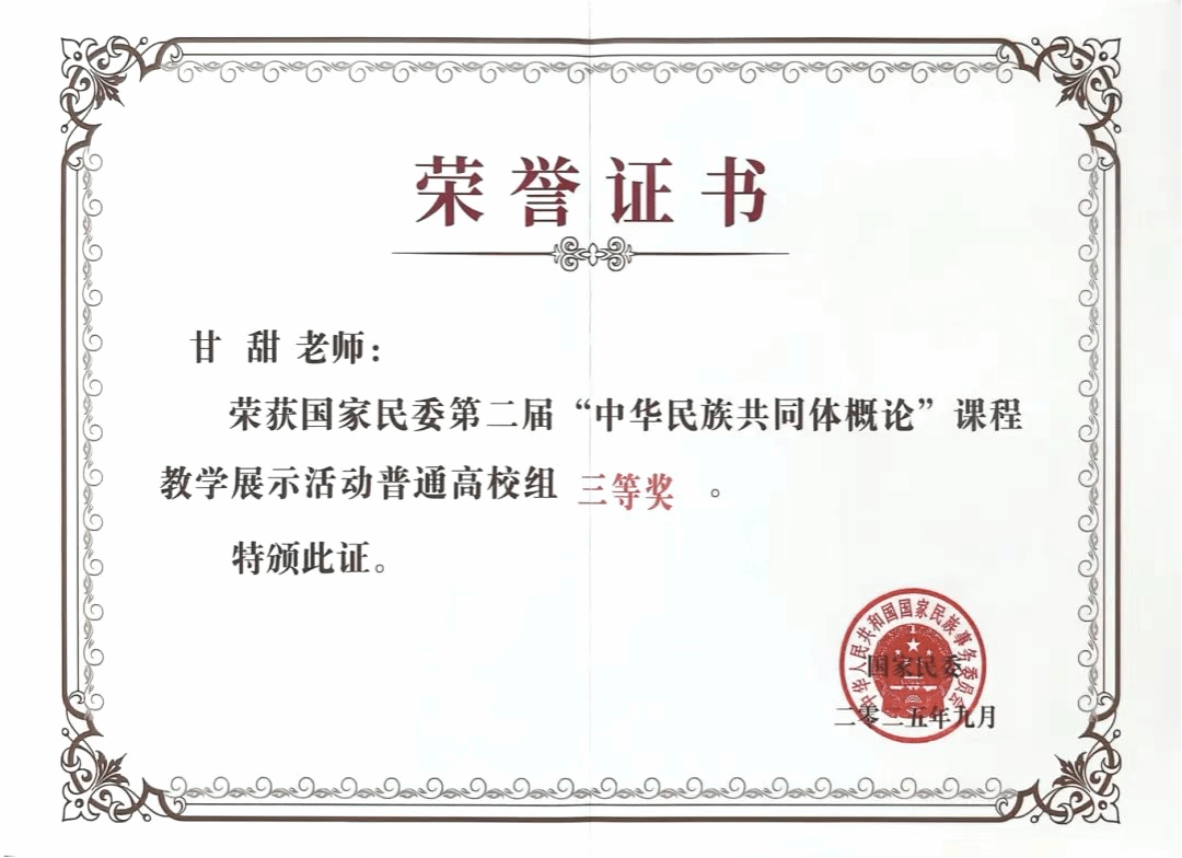 推动学院获批国家级一流本科课程、教育部人文社会科学研究项目3项、教育部全国高校思想政治工作质量提升综合改革与精品建设项目、教育部全国高校“礼敬中华优秀传统文化”宣传教育活动优秀案例和微课、国家民委高等教育教学改革研究项目、国家民委“中华民族共同体概论”课程教学展示三等奖等为标志的一系列成绩,党建引领业务工作成效显著。