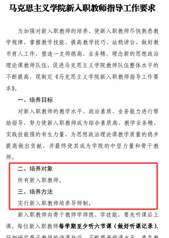 (二)选拔组建导师库。选择师德高尚、教学科研突出的党员教师担任导师,实行“1+N”结对模式(1名导师带多名青年教师)。一般建立3年的培养期限,实现青年教师政治素养与业务能力的同步提升。