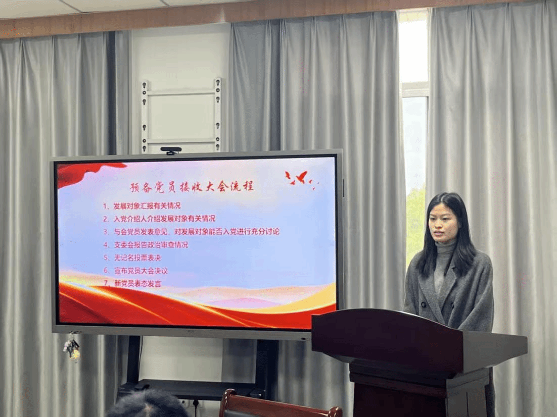 本次大会主要分为预备党员接收、预备党员转正;党支部书记领学党的二十届四中全会精神;重温入党誓词等流程。
